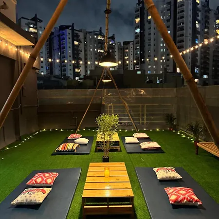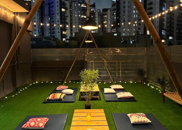 Tropical Nest 1Bhk Penthouse Near Aig Gachibowli Apartment Hyderabad is located about a 25-minute walk from the Shilparamam Arts and Crafts Village and 6 km from Jubilee Hills. Situated in close proximity to the SLN Terminus, this apartment offers a terrace where guests can relax and enjoy the garden view.
